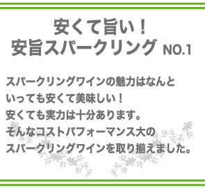 気軽に毎日ごくごく飲めて楽しめる♪スパークリングワイン特集 安くて旨い!安旨スパークリング No.1 ≪ 特集一覧 ≪