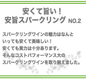 気軽に毎日ごくごく飲めて楽しめる♪スパークリングワイン特集 安くて旨い!安旨スパークリング No.2 ≪ 特集一覧 ≪